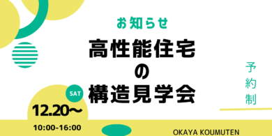 2025年12月20日(土)~和歌山市にて構造見学会を開催します。地震に強く高気密高断熱の施工を見ていただき家づくり…